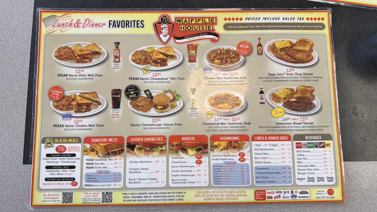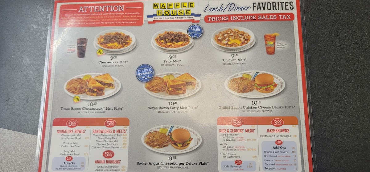 Waffle House at 613 Thornton Rd, Lithia Springs, GA, offers a classic American diner experience with its hearty breakfast menu that delights every appetite. The star of the menu is the indulgent Hashbrown Bowls, featuring generous double hashbrowns loaded with melted American cheese and toppings like cheesesteak, grilled chicken, or sausage, creating a flavorful and satisfying meal. Their Breakfast Sandwiches showcase quality ingredients—Jimmy Dean® sausage, Smithfield® bacon, fresh eggs, and American cheese—served on your choice of toast, perfect for a quick and filling start. The Biscuits stand out as well, grilled to golden perfection, packed with savory meats and eggs, offering a comforting, homestyle feel. Customer reviews praise the warm hospitality, prompt service, and consistent food quality that Waffle House is known for. Whether dining in or taking out, the familiar, comforting flavors paired with genuine care create a welcoming spot that truly honors the American breakfast tradition.